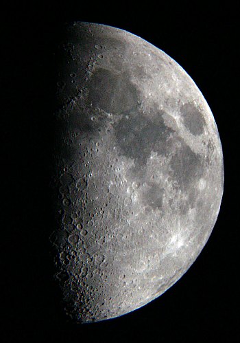Nach einer Bestandsaufnahme der Situation auf dem Kahlenberg und einem Instrumententest mit Charlotte Rettenbacher-Ludwig und Norbert Egger ebendort beschliesse ich, mich dem Mond zu widmen, der heute in beeindruckender Phase steht. Leider kommt die Kaltfront zu pünktlich und so bleibt es bei einem einzigen Foto. Man beachte das Mare Australe! |