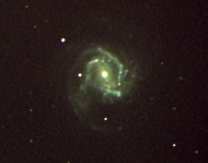 Ich stürze mich in die Deep Sky Nacht. Ich belichte mit der MX916 Serien zu je 10 Aufnahmen zu je einer Minute Belichtungszeit pro Farbe. Mehr als eine Minute geht anfänglich nicht, ein Softwareproblem offenbar, das sich im Lauf der Nacht irgendwie von alleine behebt. Hello Houston ... Mit Auslesezeit vergeht pro Objekt fast eine Stunde. Zeit genug, um den Himmel zu geniessen und über vieles nachzudenken. Astrofotografie ist enorm medidativ, wenn alles klappt. Und so nebenbei kann man jetzt auch aus der Kuppel über Breitbandnetz im Internet surfen, wenn's nichts mehr zum Meditieren gibt. Meine ersten Objekte sind die beiden Löwegalaxien M65 und M66. Nicht sehr originell, aber ich habe sie noch nie in Farbe fotografiert. Mit dem auf rund f/4 verkürzten 16" LX-200 passen sie gerade auf den Chip und die Lichtstärke ist auch schon recht fein.