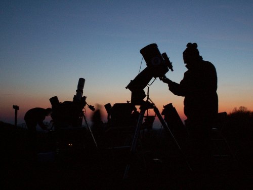 Ein kleiner Teleskopwald entsteht, und die Stimmung, die herrscht, ist in Worten nicht zu beschreiben. Lassen wir einfach Bilder sprechen ...