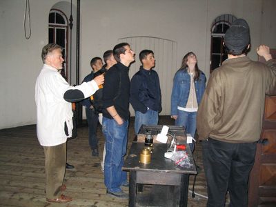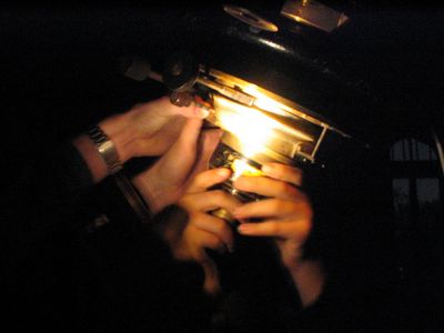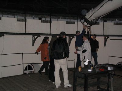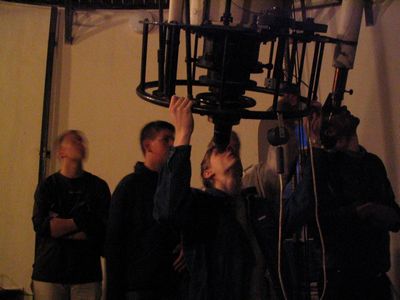 | Bericht: | Schon der erste Beobachtungs-Termin hat geklappt (nach der verschneiten Jännerführung!), obwohl bei uns im Süden von Wien der Himmel schon sehr bedeckt war. Der Wettergott meinte es gut mit uns. Noch in der Dämmerung erklommen wir (Angel, Christoph, Philip, Renate&Reinhard, Reinhard T., Thommy und Tina) die große Kuppel. Unter der fachkundigen Anleitung von Dr.Göbel und "unserem" Berhard durften wir sogar selbst die Steuerung zum Heben und Senken der Bühne bedienen.(Unfallfrei!) Nach einem Rundgang mit schönen Ausblick auf das abendliche Wien, nahmen wir unser 1.Objekt ins Visier. Der Saturn! Mit 165facher Vergrößerung waren die Monde schön zu erkennen, die Cassini-Teilung und sogar für das geübte Auge die Enck+sche Teilung! Der Okularwechsel (mit vereinten Kräften!) von 165fach auf 450fache Vergrößerung hat sich nicht wirklich ausgezahlt. Weiters folgt das 4fach-System von Kastor. Von den vielleicht 5 Sternen (wie wir gelernt haben) konnten wir, wenn die Schärfe richtig eingestellt war (das "Steuerrad" verleitete zum drehen), wirklich zwei helle,deutlich getrennte Punkte sehen. NGC 2392 (der Eskimonebel) war dann schon eher ein Glücksspiel mit den dahinziehenden Wolkenfetzen! Der Abschluß bildete der Jupiter: gerade hoch genug, durften wir sogar einen Schattenübergang miterleben. Trotz starkem Flimmern, bei der Öffnung ein Erlebnis! Nochmals herzlichen Dank von der gesamten Jugendgruppe an die beiden hilfsbereiten und kompetenten Astronomen Dr.Göbel und Dr.Aringer! Wir stehen zu unsere "Drohung": wir kommen wieder!