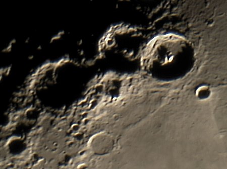 Trotz des schlechten Seeings wage ich eine Webcam-Aufnahme der drei markanten Krater. Es wird gar nicht so schlecht.