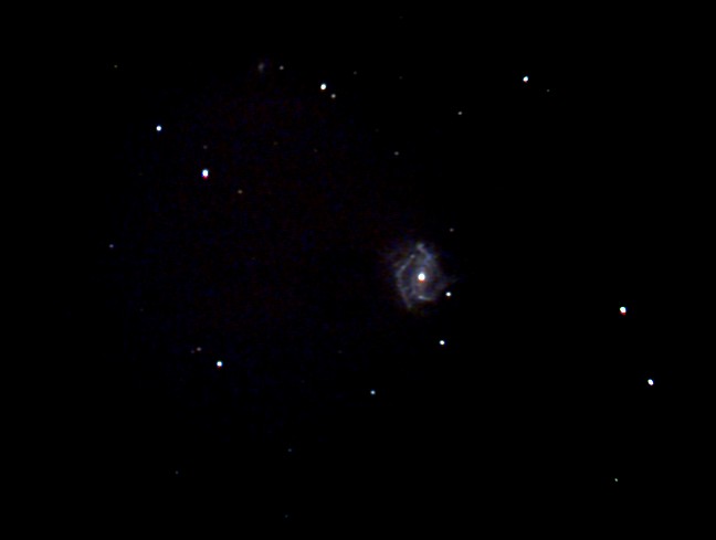 | Bericht: | Eigentlich war es nicht zu erwarten, aber der Wettergott meinte es wieder einmal gut mit mir und schenkte mir einen wolkenfreien Abend (nach verregnetem Tag). Ich brachte also wiederum mein LX90 auf die Terrasse und machte mich daran, ein paar Deep Sky Objekte mit der DSI aufzunehmen. Zunächst wollte ich ein neues Setup ausprobieren: Den Laptop der Bequemlichkeit wegen im Wohnzimmer (mit einem 5m USB-Kabel mit Verstärker mit dem Fernrohr verbunden). Allerdings brachte offensichtlich die Verstärkung des Signals Störmuster in die Aufnahmen, sodass ich den Laptop doch wieder neben dem Teleskop aufbaute. Als erstes Objkt nahm ich M61 ins Visier, ein Mitglied des Coma-Haufens. Eine Aufnahme mit 10min Gesamtbelichtung zeigt schon schön die Strukturen der Galaxie, und oben links im Bild kann man den Kern von NGC 4301 (13mag) erkennen.