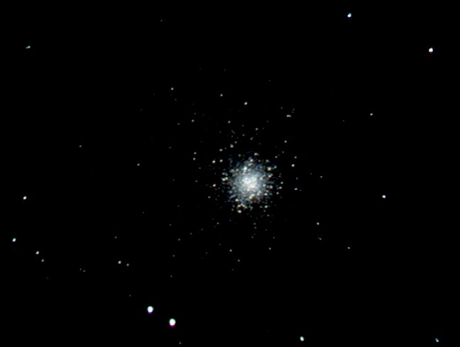 Das dritte Objekt auf meiner Liste war M53. Hier belichtete ich 30 Bilder zu 15 Sekunden, wählte die 20 besten fürs Stacking aus und legte eine Gausssche Kurve über das Histogramm, um die Helligkeit der Zentralregion besser ausgleichen zu können. Die Aufnahme halte ich für ganz gut gelungen, aber beurteilen Sie selbst.