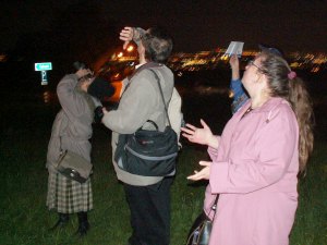 Es wird spät dunkel, doch Mond und Jupiter sind zum Glück hell genug, um auch in der Dämmerung gut beobachtet werden zu können. Und als die dünnen Wolken den Mond mehr und mehr verschleiern, bleibt Jupiter unser "Star".