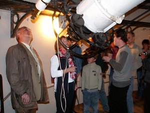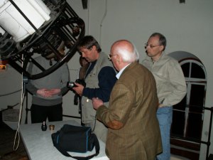 So mancher stellt mit einer gewissen Befriedigung fest, dass der Blick durch den 68cm Refraktor gar nicht so viel besser ist als durch ein 10" oder 12" Amateurteleskop; na ja, sehr große Fernrohre brauchen auch sehr gute Bedingungen - darum baut man sie heutzutage ja nicht mehr in einer Stadt, sondern in ganz entlegenen Gebieten der Erde mit erstklassigen Sichtbedingungen. Und etwas später wird uns der Refraktor ja auch zeigen, was er kann.
