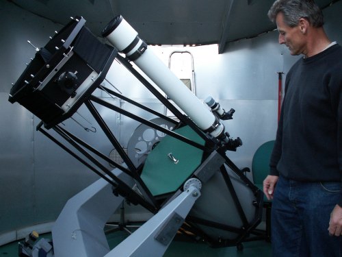 Es ist recht lustig, wenn zwei erfahrene Webcamfotografen gemeinsam an den Einstellungen der ToUCam herumexperimentieren. So verbringen wir einen sehr netten Abend, quasi ein pre-First Light. Denn das Instrument wird erst am nächsten Abend offiziell eingeweiht werden. Vielen Dank, Michael, für die Zeit und die Gelegenheit, an diesem Instrument vorab "spielen" zu dürfen! |