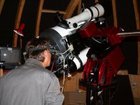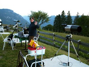 Doch nach und nach wird es ernst mit dem Beobachten; die Kuppel wird geöffnet, die Instrumente aufgebaut.