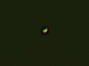 Die klare Horizontsicht läßt die drei Planeten Merkur, Venus und Saturn zur leichten Sache werden. Schon bald nach Sonnenuntergang erkennt man die Venus mit freiem Auge, später auch die beiden anderen Planeten. Im Fernrohr zeigt sich Saturn zunächst noch überraschend schön; die strahlend helle Venus ist sehr rund, noch ohne merkliche Phase. Die zeigt der schwächere, rötliche Merkur allerdings doch deutlich. Zu meiner Überraschung gelingt sogar ein recht gutes Webcamfoto von Merkur. Bei Venus und Saturn versuche ich das gar nicht. Dafür gelingen später, wenn der Wind einmal Pause macht, ein paar sehr schöne Blicke zu Jupiter.