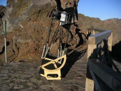 Ich hatte wieder meinen 12" Dobson im Gepäck und fuhr am Abend des Tages nach meiner Anreise am späten Nachmittag gleich auf den +Roco de Muchaches+. Zwei Wege führen auf die 2500-Meter hinauf. Obwohl beide asphaltiert sind kann ich mich nicht entscheiden, welcher der beiden noch unmöglicher ist. Auf jeden Fall lernt man die Arbeit von Straßenbauingenieuren, die man in Österreich als Selbstverständlichkeit nicht mal mehr wahrnimmt, sehr zu schätzen. Es war hier offensichtlich nicht möglich, Straßen mit gleich bleibendem Kurvenradius zu trassieren. So hat es mich immer wieder mit 40 km/h fast aus der Kurve ausgehoben. Für die 39 km von Santa Cruz bis auf die Spitze brauchte ich mehr als eine Stunde. Übrigens: Erwähnte ich schon, dass die Straßen auf La Palma nur aus Kurven bestehen? Es gibt zwar einige wenige Kilometer, wo man 80 km/h fahren kann, ohne im Straßengraben zu landen. Ich sehnte mich aber bald nach einem Stück Straße, auf dem ich nicht immer das Lenkrad bis zum Anschlag schwenken musste. Vom Gefühl her habe ich in der einen Woche, die ich dort war, 1.000.000 Kurven absolviert.