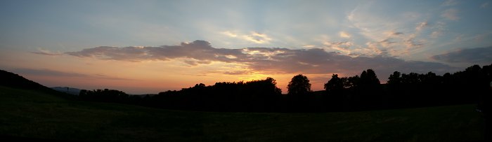 Diese Ruhe nach dem turbulenten Fest; diese Frische nach dem heißen Tag in der Sonne; diese gute Waldluft nach den unzähligen Düften des Festes. Einfach herrlich! Schon in der Dämmerung gibt es Interessantes zu sehen, nämlich Merkur und Venus. Ich halte sie sogar im Bild fest, denn so übel ist das Seeing nicht.