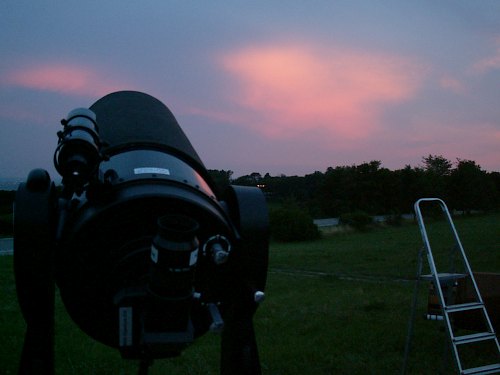 Noch ein kurzer Schauen, jetzt erfolgt auch der Notabbau des Dobson. Auch in kurzer Zeit. Wir haben also bei diesen Bedingungen einen Sternabend durchgezogen. Ob man das noch Optimismus nennen kann oder ob das schon unter Sturheit fällt? Aber, und das zählt vor allem, wir haben wirklich auch etwas von unserer Begeisterung weitergeben können. Was jetzt nicht schlecht wäre: Einmal eindeutig schönes Wetter bei einem Sternabend - und die Teilnahme derer, die sich einst so vehement diese Sternabende gewünscht haben.
