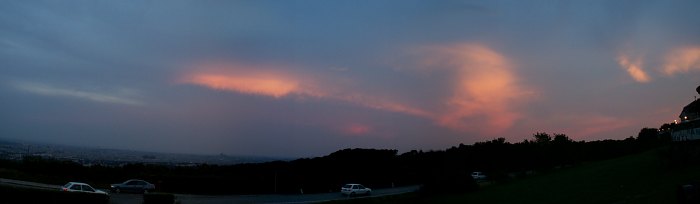 Die Gewitterwolken über Wien verfärben sich. Das kann nur die Sonne sein!