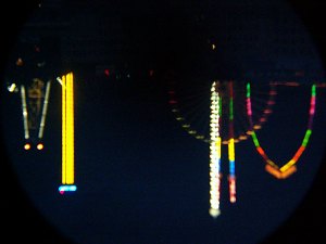 Flugzeuge schimmern durch die Wolkendecke. So dicht kann sie also nicht sein. Aber keine Spur vom Mond. Roland und Otto, beide erfahrene Flieger, jeder in seinem Metier, diskutieren eifrig über das Wetter. Der stürmische Wind wäre gut für Segler, in der Luft möchte man heute sicher nicht sein. Aber wie wird der Abend weitergehen? Wir sind unschlüssig, ob wir nicht abbrechen sollen, die ersten geben auf und gehen heim. Zu früh? Als sich Langeweile breitzumachen droht, wendet sich das Blatt. Zunächst verfärbt sich der Himmel dramatisch.