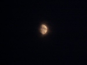 Im Osten und Nordosten blitzt es, was das Zeug hält. Auch im Süden Blitze. Wenn das nur gut geht. Doch dann ein Aufschrei: Der Mond! Es ist so weit; der Gewitterturm im Südwesten ist schneller in sich zusammen gefallen, als die Erddrehung den Mond sinken lassen konnte. Langsam, fast mühsam, kriecht der Erdtrabant aus den Wolken. Und es wird doch ein Sternabend.