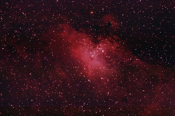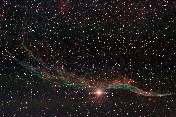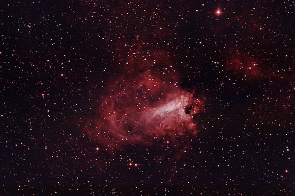 | Bericht: | Drei wolkenlose Naechte nacheinander verleiteten mich doch mehrere Stunden Schlaf zu opfern, wenn auch die Bedingungen fuer Astrophotographie alles andere als optimal waren. Ich verwendete deshalb ein UHC-Filter von Astronomik ( in Verbindung mit einem IDAS LPS-Filter als IR-Blocker), um den Kontrast zu verstaerken. Da ich nur Emissionsnebel aufnehmen wollte, war das auch vollkommen in Ordnung. Aufnahmedaten: jeweils 20x300sec./ISO800. Nachbearbeitung mit ImagesPlus( Konvertierung, Kalibrierung, Ausrichten, Kombination) und Photoshop CS2.