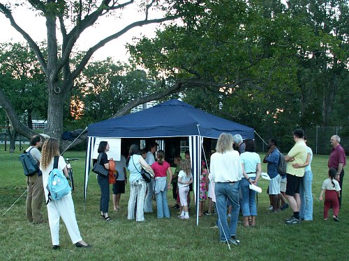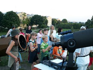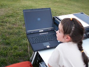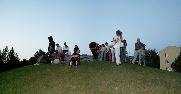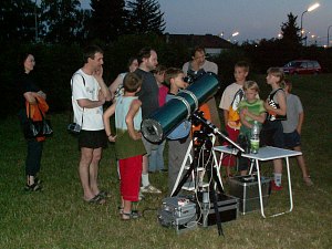 Zum ersten Mal seit vielen Jahren ist das Wetter bei einer Ferienspielveranstaltung eindeutig - schön. Den ganzen Tag über strahlender Sonnenschein, aber damit verbunden auch Hitze. Das kann nur bedeuten: Wer heute Abend zum Sterngucken kommt, muss sehr interessiert sein; alle anderen werden den warmen Abend für andere Arten der Freizeitgestaltung nützen. So ist es dann auch.
