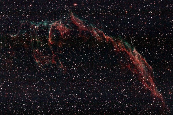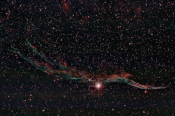 | Bericht: | Nachdem ich letzte Woche den westlichen Ast des Cirrusnebels aufgenommen hatte kam dieses Mal der oestliche Teil an die Reihe. Obwohl die Bedingungen deutlich besser waren verwendete ich wieder das UHC Filter um den selben Gesamteindruck wie beim westlichen Teil des Nebels zu erzielen.