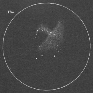 Als nächstes M16 wobei dieser merklich schwächer war doch immerhin - dank kürzlich erworbenen UHC-Filter sah ich den Emissionsnebel u. nicht nur den Sternhaufen wie bisher.