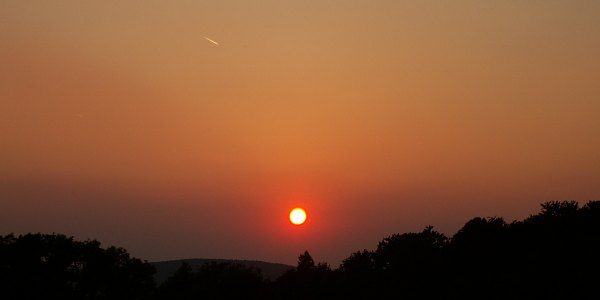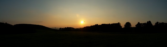 Was für ein Abend! Der Himmel, die Landschaft -- leuchten in Pastellfarben! Wer würde das für möglich halten, dass so sanfte Farben so kräftig sein können, und doch ist es so. Natürlich, die Pastellfarben haben ihren Preis: Dunst. Anders kommt es nicht zu diesen Färbungen. Doch noch beobachten wir nicht, noch genießen wir einfach. Leider kann ich eines aus technischen Gründen nicht wiedergeben: Den Geruch von frisch gemähtem Heu. Zusammen mit dem Licht und der milden Temperatur einfach -- Wellness pur!