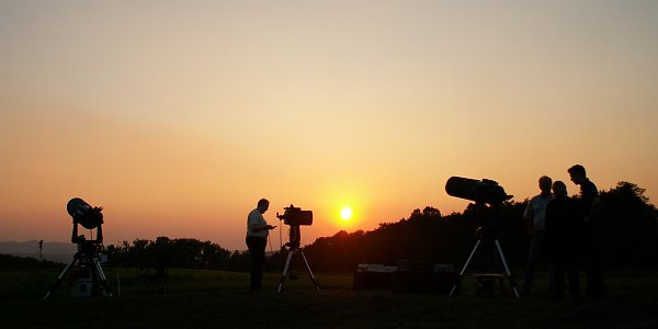 | Bericht: | Einmal hat das Wetter mit uns ein Einsehen; eine lange im Voraus geplante Serie von Astropraxisabenden fällt in eine spätsommerlich schöne Wetterphase. Zwar wird es im Lauf der Nacht schon sehr herbstlich, doch heute ist es noch durchaus sommerlich; der Pullover muss erst spät in der Nacht heraus und auch die Taukappen haben wesentlich weniger zu tun, als anfänglich befürchtet. Auch wenn die Begegnung von Venus und Jupiter wegen des Dunstes nicht so spektakulär erscheint, es wird ein sehr schöner Abend hier auf der Sofienalpe.
