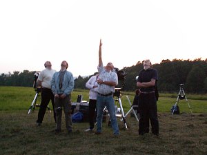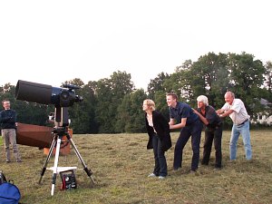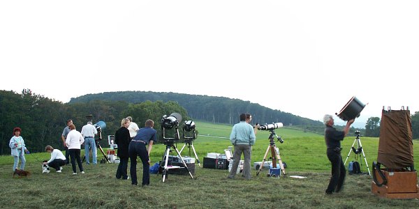Bald entsteht auf der Wiese auf der Sofienalpe ein kleines Teleskoptreffen; spätestens, nachdem Roland seinen 18" Dobson aufgebaut hat, ist die Szenerie komplett. Spaziergänger, von unserer Installation angezogen, schließen sich immer wieder uns an. Die Sofienalpen-Familie trifft sich wieder einmal ...