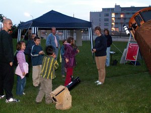 Doch man soll die Wiener Familien nicht unterschätzen. Trotz nahezu hoffnungslos bedecktem Himmel kommen einige zu unserer Station, um noch einmal in die Sterne zu schauen. Wer weiß, vielleicht wird es ja noch.