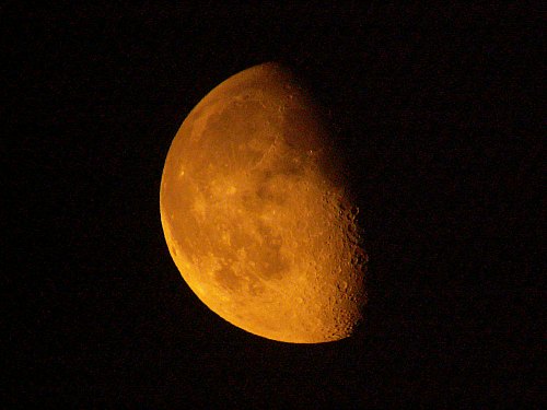 Keine unserer Gäste harren aus, um den Mond zu erwarten. Doch Renate, Roland und ich erwischen ihn dann doch noch, als wir mit dem Abbau und dem Verstauen der Instrumente so gut wie fertig sind. 22.30 Uhr und der abnehmende Mond fast im Letzten Viertel - es wird Herbst!