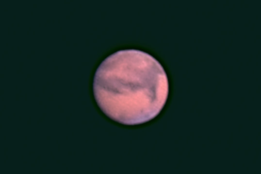 | Bericht: | Ein Königreich für ein paar Höhenmeter mehr! Nach verheißungsvollem Auftakt bei recht klarem Wetter brach gegen 22 Uhr der Nebel ein, der die meiste Zeit über alle Sterne verdeckte. Nur Mond und Mars - letzterer mit ständig wechselndem Erfolg - konnten das Dickicht durchdringen. Der Mond stand mit 78 Prozent Phase 35° südöstlich von Mars und sorgte im Verbund mit dem Nebel zu der in den Sichtminderungsdaten angegebenen Aufhellung, die bei visueller Beobachtung auch noch im Okular störend auffiel. Wie knapp ich mich einmal mehr unter der Nebelgrenze befand, zeigte sich kurz gegen 00:30 Uhr, als plötzlich der ganze Himmel für einige Minuten offen war, zu kurz, um eine weitere Aufnahmeserie zu schießen, da ich zwischenzeitig auf visuellen Betrieb umgerüstet hatte. Wenigstens war mir gegen 23:40 Uhr eine brauchbare Sequenz gelungen, denn mein weiteres Zuwarten wurde nicht mehr belohnt. Abbruch gegen 1:00 Uhr.