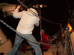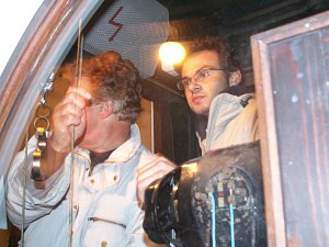 Rasch geht es hinauf zum Großen Refraktor. Paul Beck assistiert bei der Führung. Damit wir lange beobachten können, muss noch einmal die Nachfürhung aufgezogen und Mars dann neu eingestellt werden.
