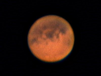 Wer hätte das gedacht; so bedeckt durch Hochnebel, wie es bei unserem dritten Kursabend "Erlebte Astronomie, Teil 1" war, kann es doch nicht mehr aufreissen? Es kann. Die Löcher in der rasch ziehenden Wolkendecke lassen zwar maximal eine Minute lang Aufnahmen des Mars zu, dennoch kommt ein Bild zustande, sozusagen fürs Archiv. |