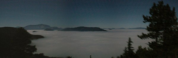 Es ist alles andere als dunkel, die klare Luft läßt das Mondlicht gnadenlos durch, aber außer dem Mond stört heute kein Licht. Die Städte liegen unter der dichten Nebeldecke. Kurt und Martin beobachten trotz des hellen Mondlichts Deep Sky Objekte, es geht recht gut.