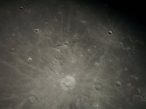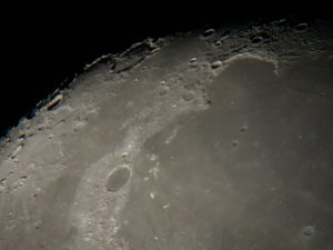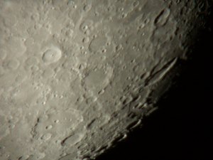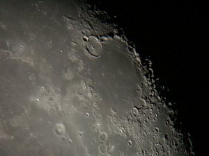 ... beim Anblick des Großen Wagen über den dünnen - und für unsere Gegend total untypischen - Fichten frage ich mich, ob ich nicht einfach zu weit gefahren bin. Jetzt fehlt hier eigentlich nur mehr ein Polarlicht. Dass wir hier zunächst nur zu dritt stehen (Roland Graf hat sich allerdings schon angekündigt), stimmt mich nachdenklich. Noch vor zwei, drei Jahren, und da war die WAA eigentlich noch viel kleiner, hätte sich an einem Samstag eine viel, viel größere Gruppe von Beobachtern eingefunden. Was sie wohl jetzt alle gerade machen. Im Gedanken gehe ich die Namen durch. Braucht es in der Astronomie wirklich einen Hale-Bopp, eine totale Sonnenfinsternis oder einen Venustransit, dass das Interesse entfacht wird? Und warum erlischt dieses Interesse dann so rasch wieder? Ist der Blick durch ein Fernrohr angesichts der durch die Medien verbreiteten Bilder wirklich so enttäuschend, dass viele einfach darauf verzichten? Fragen über Fragen. Ich sollte was tun und wende mich einmal dem Mond zu. Für eine Totale ist die Phase zu weit fortgeschritten, aber ein paar Detailfotos sind trotz des noch immer nicht so guten Seeings möglich.