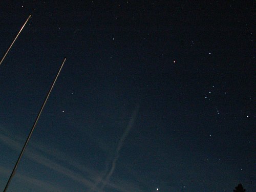 Etwas mehr Details kommen heraus, doch der letzte Kick fehlt. Ich denke, die Meade Barlowlinse, die ich jetzt auch noch dazuschraube, ist im nahen IR nicht mehr gut korrigiert. Es ist eine bemerkenswerte Sternennacht hier oben. Nach und nach, es geht auf Mitternacht zu, wird abgebaut und heingefahren. Ich philosophiere mit Roland über das Interesse für Astronomie und die Zukunft der WAA. Es ist erstaunlich, in wie kurzer Zeit sich unsere Gesellschaft doch auffällig verändert hat. Erst diese Woche habe ich in einer Wirtschaftszeitung einen Leitartikel darüber gelesen. Bindung ist out - an Lieferanten, Händler, Interessen, sogar Partner. Das trifft auch uns. Dazu eine riesige Portion Orientierungslosigkeit angesichts einer Überflutung mit widersprüchlicher Information. Wir werden uns diesen neuen Herausforderungen stellen müssen. So ist das, wenn ein neues Kapitel geschrieben werden muss. Wir haben Tinte, wir haben Papier. Jetzt ist die Inspiration gefragt. Und unser größter Gegner heißt Bequemlickeit ... Wir blicken zum Himmel. Über uns Orion. So weit ist das Jahr schon fortgeschritten ...
