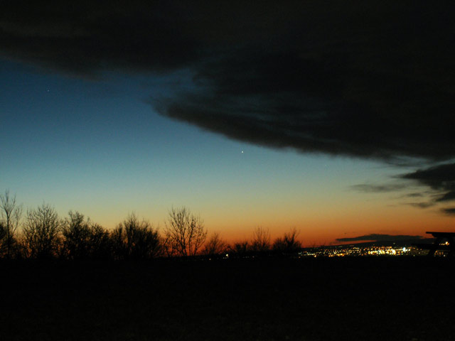 | Bericht: | Merkur - gerade noch Bei unserem Astro- Kurs im Springerschlössl habe ich leider zwischendurch keinen Blick zum Himmel gemacht und das Aufstellen des Teleskops "verschlafen" Das vermeide ich am nächsten Morgen! Um 6h 30 bin ich am Berg ( Bisamberg). Gerade noch zeigt sich Merkur im Osten vor der herannahenden Front! Im Westen stimmungsvoll der Mond hinter den Wolken. Es ist wirklich schade, dass bei uns nur mehr wenige Menschen solche Naturschauspiele genießen können.