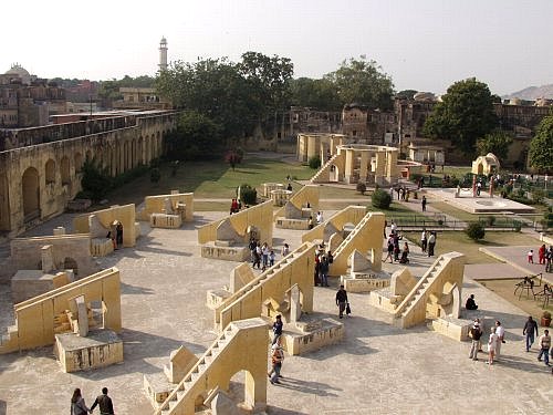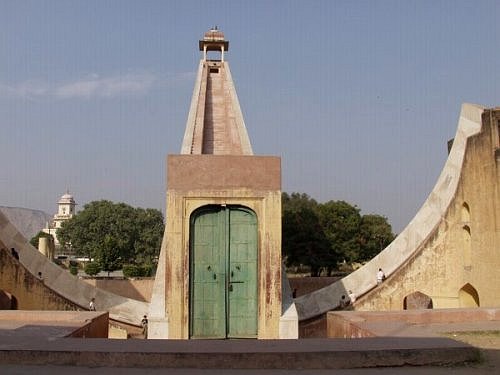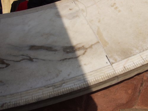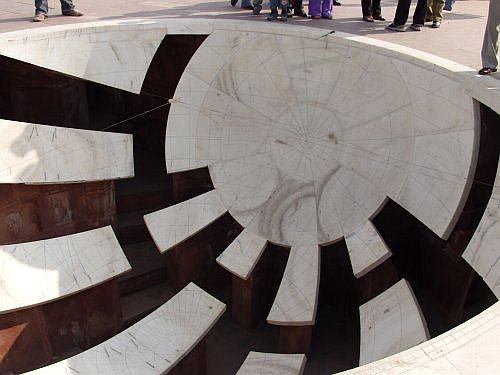 Auf der Rundreise durch Indien besuchten wir das berühmte Observatorium Jantar Mantar in Jaipur. Wir waren etwas misstrauisch, denn in Samarkand hatte man uns auch das berühmte Observatorium des Ulug'bek angekündigt, dessen Reiz dann aber nur aus dem Grundriss der Sternwarte und einem Drittel des ursprünglichen Sextanten bestand, der noch aus der Erde ragte. Sonst war nicht ein einziger Stein von dem Observatorium des Ulug'bek erhalten geblieben. So waren wir sehr überrascht, als wir in Jaipur ein völlig intaktes und funktionsfähiges Observatorim vorfanden, das auch wesentlich größer war, als wir erwartet hatten. Der Maharadscha Sawai Jai Singh II (1699-1744) hatte die Stadt Jaipur gegründet und sie nach seinem Namen benannt (Jai-pur).