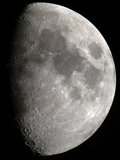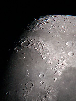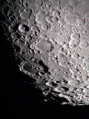 Da habe ich bei doppeltem scheinbaren Durchmesser schon schlechtere Fotos gemacht. Schade, dass einmal mehr die völlig uninteressante Seite des Planeten zu sehen ist. Eine Aufnahme wie diese macht Mut für 2007, wo Mars in Opposition (genau am 24. 12.) immerhin 16" erreichen wird. Jetzt widme ich mich dem Mond mit der Digitalkamera. Durch das 75mm Projektionsokular mache ich mit der Minolta Z3 einige schöne Schnappschüsse. Alle Aufnahmen bei ISO 100.