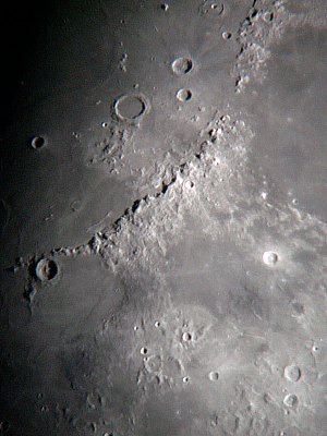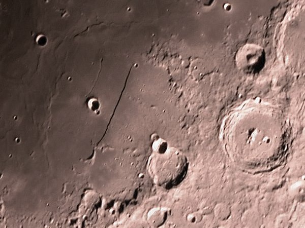 Das Seeing ist so gut, dass ich beschliesse, mit der Webcam weiterzumachen. Einige ausgewählte Regionen auf dem Mond nehme ich mir mit 3m Brennweite und IR Passfilter vor. Ich mache jeweils 600 Frames, stacke aber nur die 30 - 40 besten. Beim Mond gilt, weniger ist mehr.