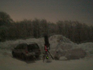 | Bericht: | Endlich ist es so weit. Ein stabiles Hochdruckgebiet hat sich über uns ausgebreitet. Eigentlich wollten wir heute die Hohe Wand ansteuern, doch Reste einer Staubewölkung machen die Sache unsicher. Warum in die Ferne schweifen, wo doch in Wien das Wetter so schön ist und der Mond ohnedies den Himmel aufhellt. Also peilen Roland und ich die Sofienalpe an. Die Zufahrt und der Parkplatz sind vorbildlich geräumt, besser als so manche Straße in einem Wiener Außenbezirk. Kein Problem, einen Stellpatz für Auto und Instrument zu finden, die Schaufel kann im Kofferraum bleiben.