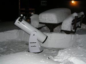 Sollte heute doch noch eine Beobachtung möglich sein? Wäre toll, immerhin findet die Begegnung von Mond und Mars statt. Also schnell wieder zur Schneeschaufel gegriffen und auch noch den Beobachtungsplatz freigebuddelt. Ächz, so viel Sport war eigentlich nicht eingeplant ...