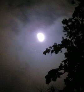 Aber dann hatten wir das Vergnügen, dem Rendezvous zwischen Mond und Mars beiwohnen zu dürfen. Zuerst noch durch Wolkenschleier...