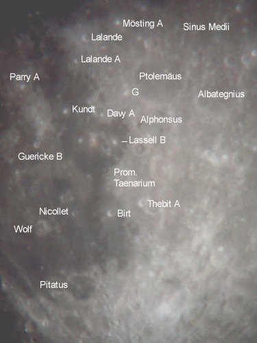 | Bericht: | Heute: Das Seeing ist noch schlechter als gestern und der Mond noch heller; also wird es wieder eine Mondbeobachtung, bei der ich mich aber auf die großflächigen Strukturen und vor allem angesichts des schon sehr vollen Mondes auf Albedostrukturen konzentrieren möchte.