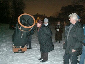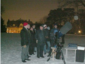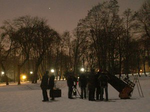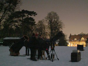 | Bericht: | Heute haben wir großes Wetterglück an diesem vorletzten Abend unseres Grundkurses "Erlebte Astronomie, Teil 1". Es geht um Sterne und Sternentwicklung, und genau zwischen einer durchziehenden kleinen Wolkenfront und aufziehendem Hochnebel können wir noch zwei Stunden lang beobachten, und das bei durchaus milderen Temperaturen als an den letzten Tagen. Trotzdem bleibt von unserem recht grossen Teilnehmerfeld nur eine kleine Gruppe zur Praxis. Zum Thema Sterne und Sternentwicklung passen viele Objekte: Rigel und Beteigeuze, der Doppelstern g Andromedae, der Orionnebel M42 (trotz Stadt- und Mondlichts immer noch mit freiem Auge zu sehen und im Fernrohr beachtlich), die Pleiaden M45, die Praesepe M44. Doch auch Mond, Mars und Saturn dürfen nicht zu kurz kommen.