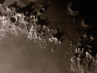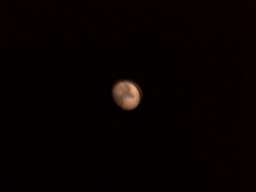 Trotz nur 8" scheinbarem Durchmessers viele Details, vor allem die Große Syrte. Leider ist es für Saturn jetzt schon zu dunstig, für die Webcam ist nicht mehr genug Licht da. Aber immerhin, ein netter Astropraxis-Abend. |