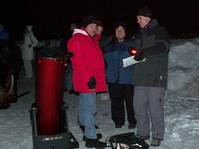 Nach dem Motto "man gewöhnt sich an alles" finden wir die -10°C heute durchaus normal und beim Beobachten nicht hinderlich. Zum Glück geht kein Wind, sonst wäre die Sache schon eine andere. So aber entsteht entspannte und lebendige Astropraxis.