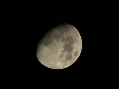 Fernrohr baue ich jetzt keines mehr auf, aber die kleine Digitalkamera kann den Mond auch so überraschend nahe heranzoomen.