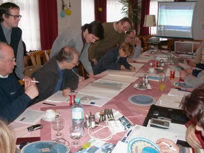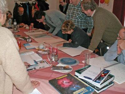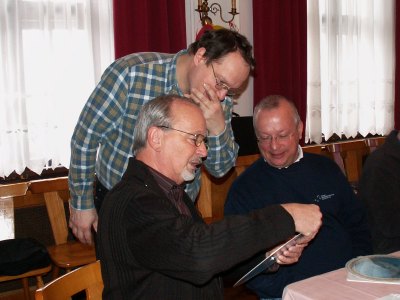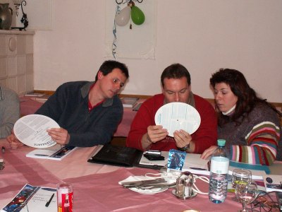 Heute können wir beim ersten Workshop aus der Reihe "Die Sterne" wirklich nur Theorie üben. Das Wetter ist so eindeutig schlecht, dass Praxis definitiv nicht möglich ist. Also beschäftigen wir uns mit der Praxis hinter Gestirnkoordinaten. Den Anfang macht die Drehbare Sternkarte. Wir lernen, wie man eine Position in die Karte überträgt - leider lassen sich die Autoren der Karten nicht über eine Epoche aus; daher kann das mit dem Einstellen von Planetenpositionen aus dem Jahrbuch auch nie exakt stimmen. Wir bestimmen den Ort von RS Oph und berechnen mit der Karte seine Aufgangszeit. Gar nicht einfach, und vor allem - Ortszeit für 50° N; das macht in Wien schon einen erheblichen Unterschied! Danach beschäftigen wir uns mit Himmelskarten und Sternkatalogen. Auch in Zeiten des Computers wichtige Hilfsmittel zur Vorbereitung einer Beobachtung. Auch der elfjährige Peter sucht mit Begeisterung Sternpositionen und Koordinaten mit der drehbaren Sternkarte. Auch mit Himmelskarte und Sternkatalogen findet er sich schnell zurecht. Zuletzt geht es aber dann doch an den Computer. TheSky kann ja doch mehr zeigen als jeder gedruckte Atlas und vor allem auch die Präzession berechnen. Und mit AstroArt und Astrometrica kann man sogar Positionen vermessen - ganz einfach übrigens! Zum guten Schluß gibt Peter noch ein kleines Mozartkonzert am verstimmten Klavier im Seminarraum. Das Wetter vereitelt wie gesagt die Praxis unterm Sternenhimmel, so freuen wir uns auf den nächsten Termin - und besseres und vor allem wärmeres Wetter! |
