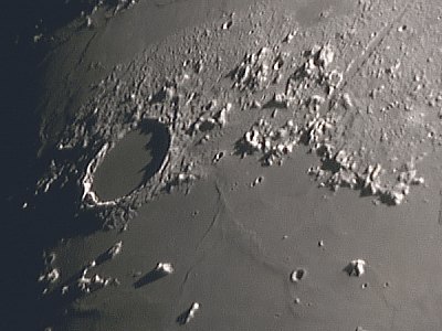 So ein Mondspaziergang ist immer wieder schön; am bemerkenswertesten ist heute aber sicher Clavius genau am Terminator. Es stimmt, der Anblick des Mondes ist wirklich jedesmal ein anderer. Zuletzt erlaube ich mir noch einen Scherz und nehme mit 2x-Barlowlinse (F=6m) den nur mehr 6" kleinen Mars auf.