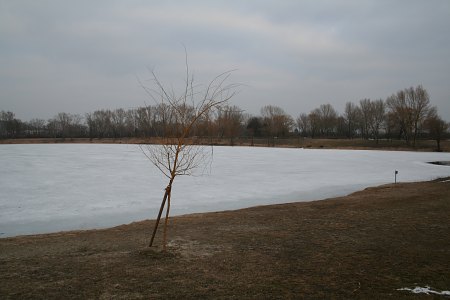 Doch ein Blick auf den zugefrorenen Teich macht klar, es ist nicht nur astronomisch noch Winter.