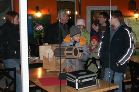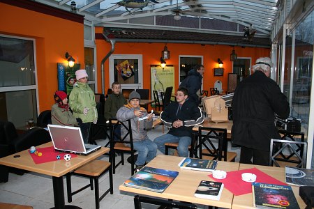 Da die Wolken auch überwiegend dicht bleiben, findet Astronomie einmal mehr im Saal statt, heute im Wintergarten des Restaurant "Zur Seeschlacht" in Langenzersdorf.