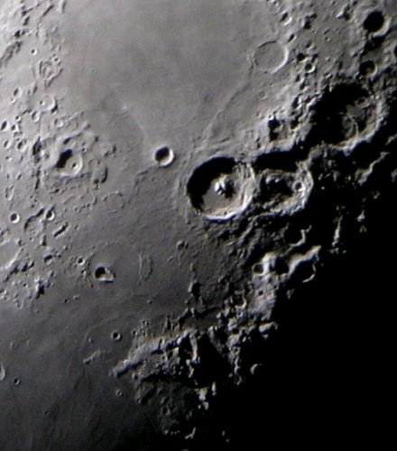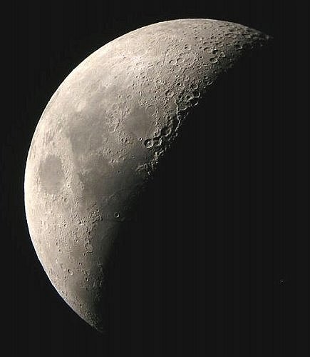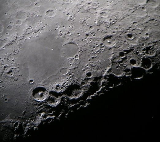 | Bericht: | Als die Sonne am wolkenlosen Himmel unterging und die schmale Sichel des Mondes bereits vom noch blauen Himmel freundlich herunterblickte, holte ich nach langer Zeit wieder einmal meinen Dobson aus dem Dochboden und stellte ihn zum Auskühlen auf die Terrasse. Nach ca. 2 Stunden begann ich ohne große Erwartungen mit der Beobachtung, da der Himmel ziemlich dunstig schien und nur wenige Sterne zu sehen waren. Aber ein Blick durch das Rohr - und Begeisterung kam auf. Das Seeing war für Wiener Verhältnisse direkt sensationell. So montierte ich schnell die kleine Kamera und versuchte das tolle Seeing für ein paar Bilder zu nützen. Natürlich gibt es bessere Fotos vom Mond, auch mit dem 10"er auf der Jagdhütte gelangen mir schon ansprechendere Bilder, aber es wurden immerhin meine besten Aufnahmen mit dem 8"er in Wien.